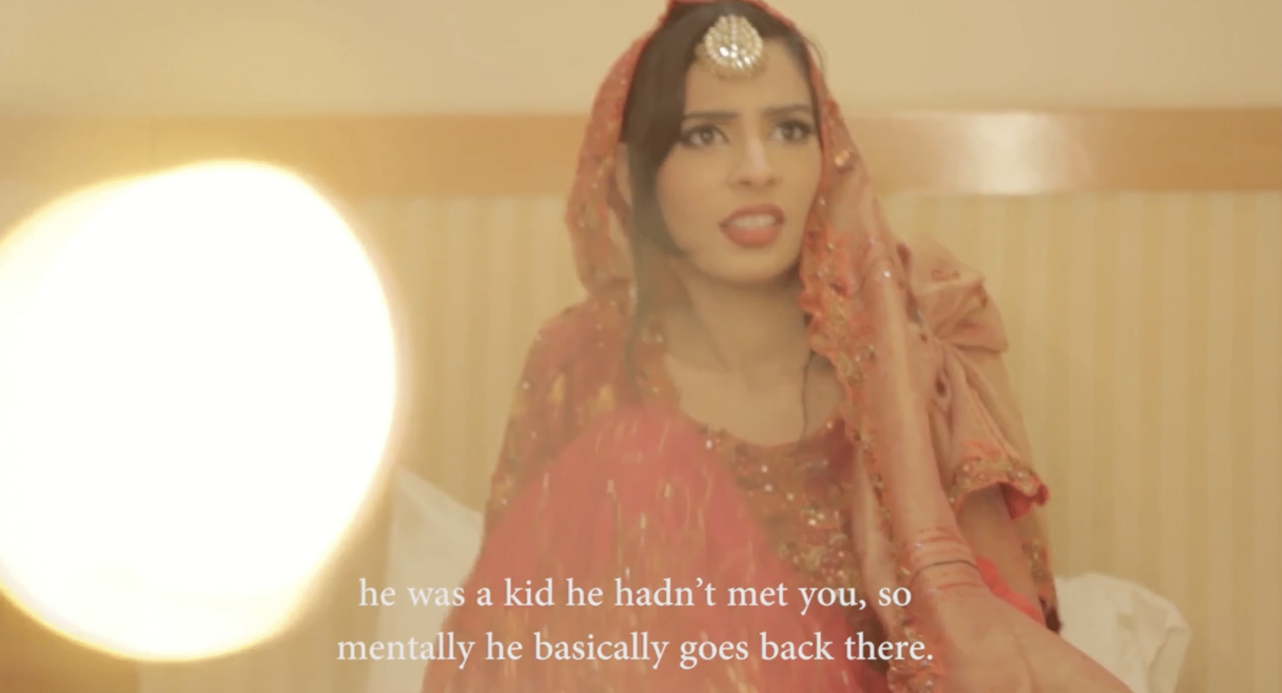 Anjaan is a 2015 short film written and directed by Hira Tariq on the interaction between a young couple where the wife entertains her husband’s amnesic episode in hope that she can bring him to the present. During the episodes of this nature, the husband, Bilal, enacts the incidents perhaps resulting from having witnessed a car accident and perhaps the death of his mother as a child. As a policeman, he arrives at his home and tells his Wife (an unnamed character) that her husband has died in a crash. The film implies that Bilal may have been a policeman and has had to retire, but this episode shows him as in active duty where his Wife receives him as such. The information does not become clear until the end of the film, where we also learn the Wife became aware of Bilal’s condition on her wedding night.
